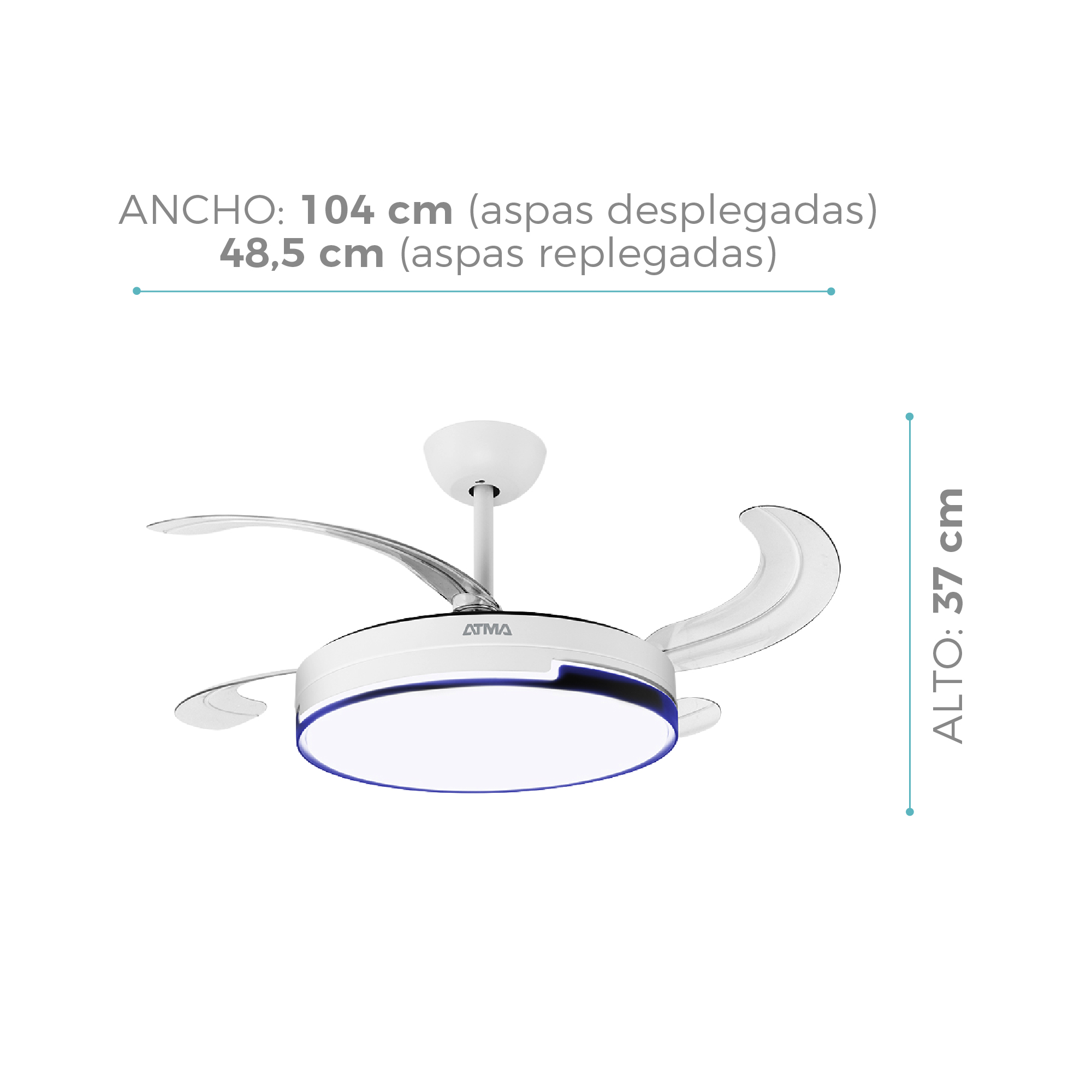VENTILADOR DE TECHO 42" - 4 ASPAS RETRÁCTILES BLANCO